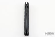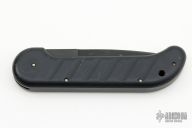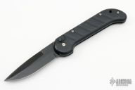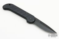 This Ron Miller/Charles Ochs coil-spring automatic features a black blade and black anodized aluminum frame. Strong and fast opening. Nice function. Has some scuffs and scratches, otherwise good condition.