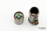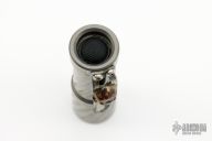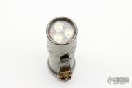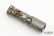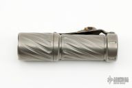 This Twist Trident by Hanko Machine Works is made from titanium, it is stonewashed, has a tip up Steel Flame titanium clip with Darkness skull. Components: Samsung 4K LEDs. 5 tritium inlays. Has a couple of scratches, otherwise excellent condition.
