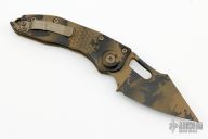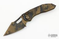 This Stitch Auto by Microtech Knives features an Coyote camo coated blade and false top edge, notched thumb and finger rests. The handle has an Coyote camo coated anodized and milled aluminum handle with a titanium backspacer, stainless steel hardware and clip, tip up carry, lanyard hole at the butt. Comes with original box and papers. S/N of 129 and dated 01/2023. Excellent condition.