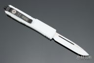 This Storm Trooper Ultratech OTF by Microtech Knives features a s/e white cerakoted blade with a standard edge and a white cerakoted aluminum handle. Black stainless steel clip. Glass breaker. Serial number 320 and dated 01/2023. Comes with original box and papers. Excellent conditon.