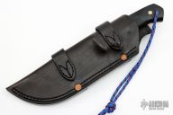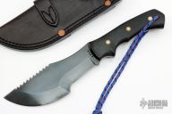 This is a WSK Tracker made by Dave Beck. It features a blued and hand rub satin finished blade with self-cleaning sawteeth on blade spine. Black linen micarta scales. Full tapered tang construction with .241" blade stock and 2.470" blade depth. Includes original Dave Beck black leather sheath and a zippered case. Tracker is stamped "686" on ricasso. Excellent condition.