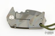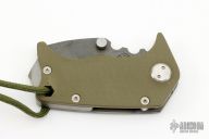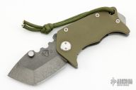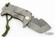 The Panzer is the first in our series of smaller but exceedingly stout folding knives. We named it the German for "Tank" for obvious reasons. This is a compact tanto that is small enough to be out of the way when carried yet tough and capable when needed. The blade is .190" Black PVD D2 and the handles are 1/8" stonewashed/flamed Ti and green G-10. Has a few light scuffs, otherwise excellent condition.