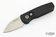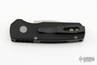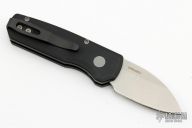 The Runt 5 by Pro-Tech Knives features a tumbled sheepsfoot style blade. The handle features a smooth black aluminum handle with a black tip up stainless steel pocket clip. Excellent condition.