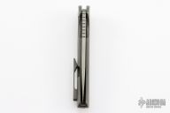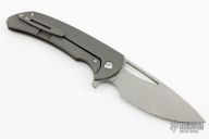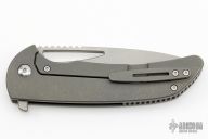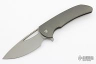 This Archbishop by Ferrum Forge features a tumbled drop point blade with thumb hole and flipper. The handle has a tumbled titanium frame with matching backspacer and tip up clip. Comes with a zipper case. Excellent condition.