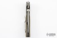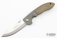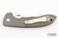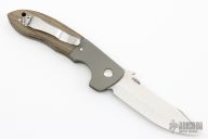 This Custom CQC-8 Folder from Emerson features a hand ground satin finished blade with bead blast dovetailed titanium bolsters, green canvas micarta scales, bead blast titanium liners, tip up stainless steel clip. Thumb Disc, wave feature, notched thumbrest. Nice detent, lockup and blade seating. Comes with original box. Has a couple light scuffs, otherwise excellent condition.