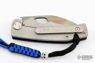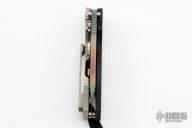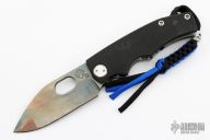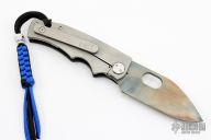 This 187RMP by Medford Knife features a vulcan finished blade with thumbhole and notched thumbrest. The handle has a black G-10 and tumbled titanium frame with matching tip up clip. Nice detent and lockup, and blade seating. Comes with original hard case and papers. Excellent condition.