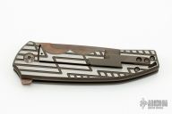 This SVIPUL TI FLIPPER by Bawidamann Blades features an acid etched blade with flipper tab. The handle has a milled two-tone titanium frame with matching tip up clip. Comes with a zippered case. Has a couple light scuffs, otherwise excellent condition.