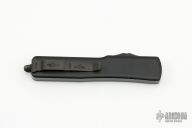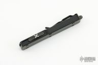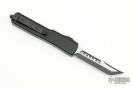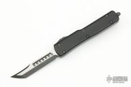 This UTX-70 OTF automatic by Microtech features a two-tone shadow finished blade with a standard edge. The handle has a black aluminum frame, black stainless steel tip down clip. Dated 10/2022 s/n 006. Comes with original box and papers. Excellent condition.