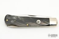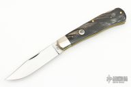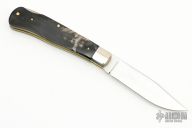 This lockback by Colonel Coon features a mirror finished blade with nail nick. The handle has nickel silver bolsters, buffalo horn scales, brass liners, stainless steel spring. Has some light scratches, otherwise excellent condition.
