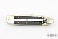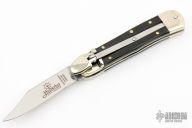 This leverlock auto by Hubertus features a mirror polished blade, nickel silver double bolsters, ebony scales, nickel silver liners and brass pins. Opens with a nice snap. Very fast opening. Comes with original box and papers. New condition.