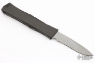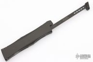 This Combat Talon II by Microtech features a bead blasted blade with partial serrations. Push button automatic opening. Closes via a reverse charging handle in the rear of the frame. Contoured aluminum frame with milled ribbing on the frame spine and belly. Dated 04/2001. Comes with zipper case. Has some light scuffs and scratches on the frame and blade. Great condition otherwise.
