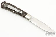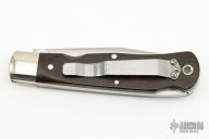 This lockback by Queen Cutlery features a satin finished blade with nail nick and notched thumbrest. The handle has nickel silver bolsters, green linen micarta scales, stainless steel liners, stainless steel spring, has a tip up stainless steel clip. Has some light scratches, otherwise good condition.