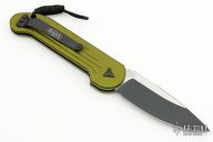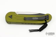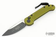 This LUDT by Microtech features a two-tone black finished blade. The handle has a green aluminum frame with black hardware and tip down clip. Comes with original box and papers. Dated 02/2023 and s/n 30115. New condition.