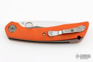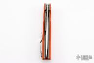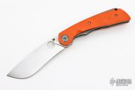 The Nati Amor designed Spyderco Subvert is a large folding knife revealed at Spyderco's 2018 Amsterdam Meet. This folder sports a clean, balanced aesthetic based on Nati's handmade Sabotage custom. It features orange G-10 scales over thick bead blasted titanium liners. Its blade has a satin finish, high flat grind, and a generously bellied edge. Add a unique Nati Amor design to your collection today! Features: A heavy duty titanium liner lock offers dependable blade lock up. Stainless steel clip for tip-up pocket carry. 3D textured G-10 handle scales provide a secure and comfortable grip. Comes with original box, papers. Has a couple scuffs, otherwise excellent condition.