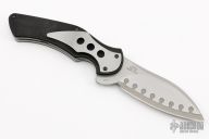The Kershaw Junkyard Dog II by Kershaw features a fine bead blasted two-piece blade with false top edge. Easily opened via the Flipper system on the spine. The handle has black G-10 scales with stainless steel liners and down clip. Nice detent, lockup and blade seating. Excellent condition. Comes withoriginal box, papers and zippered case. Dated Jan 09