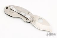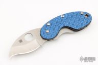 This Cricket by Spyderco features a satin finished hawkbill blade with thumbhole. The handle has a satin finished stainless steel frame with blue scale, tip down stainless steel clip. Comes with original box. Excellent condition.