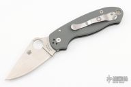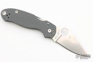 This Paramilitary 3 Linerlock Folder from Spyderco has a stonewashed finished clip point blade with thumbhole and notched thumb rest. Handle has grey G-10 scales with nested stainless steel liners and 4-way reversible clip. Comes with original box and papers. Excellent condition.