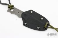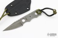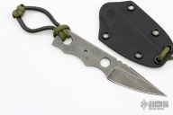 This Neck Knife by SAR Custom Knives features a tumble finished blade with notched thumbrest, .111" blade stock and .920" blade depth, full tang construction. Comes with a kydex sheath. Has a couple scuffs, otherwise excellent condition.