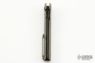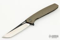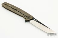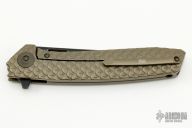 This 604Q by WE Knives has a two tone, tanto style blade with black coated grinds and satin flats. The blade features a thumb hole, notched thumbrest and flipper. The handle is comprised of a black "Scale" machined titanium frame with anodized titanium tip up clip. Great blade seating, detent and lock up. Includes padded and zippered case, disassembly tool. Has some light scuffs and scratches, otherwise excellent condition.