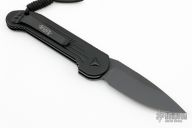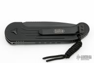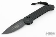 This LUDT side opening automatic by Microtech has a black blade with a standard edge and a black aluminum frame. This tactical version has black fittings. Stainless steel clip. Dated 05/2022 and serial number 26627. Comes with original box and sheath. Excellent Condition.