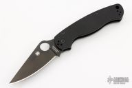 This Paramilitary 2 by Spyderco has a black clip point S45VN blade with thumb hole and notched thumb rest. Handle is black G10 with stainless steel liners and black stainless steel 4-way reversible clip. Comes with original box and papers. Excellent condition.