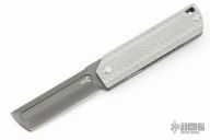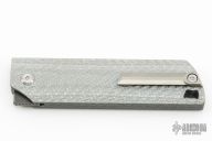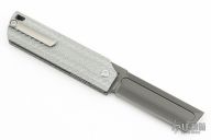The MaximX (SpaceXi) Flipper version 1 is the LARGE brother of the SpaceX.  The MaximX is the second version of the SpaceX that runs on bearings that allows it to almost fly open.  Its complexity is in its simplicity.  It is sleek and simple, but with a complex 6 face grind with fullers.  It is a modern take on your grandfather’s pocketknife.  It is a pleasure to hold and use.  The Blade is M390 high grade knife steel and the handles are silver twill and titanium.  Comes with original box. Excellent condition.