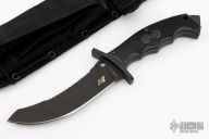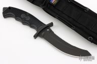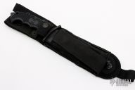 The Warrior fixed blade is one of the world's most intriguing combat knives. Based largely on the groundbreaking research of close-combat icon Michael Echanis, the original Warrior was a radical design intended primarily for use with reverse-grip tactics inspired by the Korean martial art of HwaRangDo. Produced in limited quantities by the late Al Mar and later resurrected by the martial artist Bob Taylor and Echanis contemporary Randy Wanner, it is one of the most coveted combat knives ever made. The Spyderco Warrior faithfully retains all the salient features of the original, while adding a number of performance enhancements. Its revitalization happened at the request of our Israeli customer, Guy Rafaeli. Ground from rust-free austenitic H-1 steel, it possesses the same differential hardness properties of a clay-tempered Samurai sword, giving it extreme cutting power and shock resistance. Its full-tang construction and textured handle scales provide a superior grip and edge orientation, maximizing the knife's effectiveness when employed with its signature tactics. The sheath is a black ballistic nylon snap-closed sheath with Molle-vest attachment capability. Comes with original sheath, box and papers. Has some light scuffs, otherwise excellent condition.
