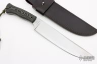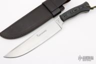 This Crowell/Barker Competition Knife by Browning features a satin finished blade, .229" blade stock and 1.839" blade depth, full tapered tang construction with black linen micarta scales. Comes with original black leather sheath and box and papers. Excellent condition.