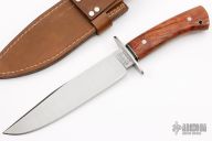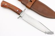 This Fisk Bowie from Camillus features a satin finished Bowie blade, .184" blade stock and 1.476" blade depth, hidden tang construction. The handle has a steel guard and a desert ironwood burl handle. Comes with a brown leather sheath and original box, papers and zippered case. Excellent Condition.