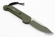 This LUDT by Microtech features a green cerakote blade. The handle has an OD Green cerakote aluminum frame and hardware and tip up clip. Comes with original box and papers. Dated 02/2023 and s/n 30482. Excellent condition.