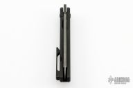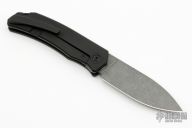 This Trevor Burger deisgn by Urban EDC features a dark stonewashed blade with notched front flipper. The handle has a black tumbled titanium frame with black canvas micarta inlay, matching tip up clip and backspacer. Comes with originla box and zippered case. Excellent condition.