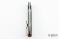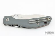 This ergonomic Kapara knife design from Alistair Phillips was revealed at Spyderco's 2018 Amsterdam Meet. Alistair is known for his, slim pocket friendly designs and the Kapara certainly fits the bill. It features a slender grey G-10 handle outfitted with a red G-10 backspacer and a reversible tip-up wire pocket clip. The knife sports a 3.5" CPM-20CV blade and a dependable Compression Lock mechanism. Comes with original and papers. Excellent condition.