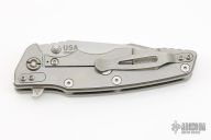 This Eklipse Tri-Way by Hinderer Knives features a stonewash finished harpoon spanto blade with dual thumbstuds, flipper and notched thumbrest. The handle has a stonewash finished titanium frame a titanium scale, titanium clip and hardware. Nice detent, lockup and blade seating. Comes with original box, card and extra hardware. Excellent condition.