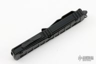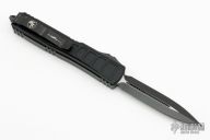 This Ultratech II by Microtech features a black double edged blade. The handle has a black aluminum frame with a "stair step" design for better grip. Stainless steel tip down clip. Dated 02/2022 with s/n 728. Includes original box and papers. Excellent condition.