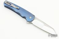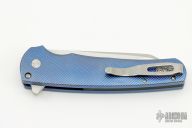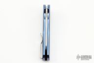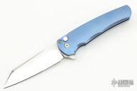 This Malibu by Pro-Tech features a Mike Irie hand ground mirror polished multi-ground blade with flipper. The handle has a milled and anodized titanium frame with gold lip pearl inlaid push button, black G-10 backspacer and a stainless steel tip up clip. Comes with original box and papers. New condition from the 2023 CCKS.