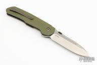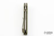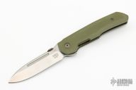 If you’ve never heard of Bob Terzuola, you’ve more than likely seen his contributions to the knife industry over the last four decades. After all, he invented the tactical folder and he wrote a book, The Tactical Folding Knife, to share his techniques with peers. Designed by the legendary knifemaker, the CTF is similar to the ATCF (Advanced Technology Combat Folder), Terzuola’s signature tactical folding knife. This production version is made with premium materials—like a CPM-S35VN stainless steel blade, green G-10, and titanium liners—with some of the unmistakable elements found on the original. These details include the spine-mounted thumb disc opener, the fuller groove along the blade, and the titanium pocket clip with completely hidden hardware. In addition, the CTF has a subtle flipper tab and a ceramic-bearing opening system for smooth deployment with little effort. Excellent condition. Comes with a zippered case.
