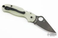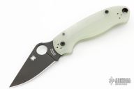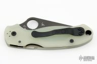 This C223GPOR Para 3 by Spyderco features a black finished clip point blade with thumb hole and notched thumbrest. The handle is comprised of an jade G-10 frame over nested steel liner and stand-offs. The steel pocket clip is 4 way adjustable. Includes original box and paperwork. Has a couple light scuffs, otherwise excellent condition.