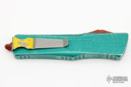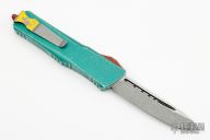 This Combat Troodon by Microtech features an Apocalyptic finished tanto blade. The handle has a distressed green aluminum frame with red hardware and a tip down stainless steel clip. Comes with original box and papers. Dated 08/2020 and s/n 830. Excellent condition.