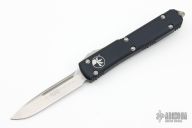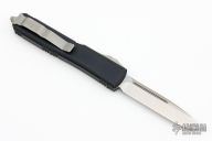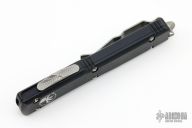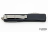 This Ultratech OTF automatic features a stonewash finished drop point blade with fullers and single blade edge. Handle is contoured black aluminum, marked 02/2018 with serial number 91099. Stainless steel hardware, and clip. Comes with original box and papers. Excellent condition.