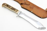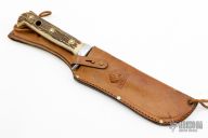 This Vintage White Hunter by Puma is the ultimate outdoorsman’s knife, originally designed by African professional hunters. It features a curved blade for cutting, slicing and skinning and a strong back edge for hacking. Handmade by skilled craftsmen with stag scales. Comes with original brown leather sheath. Has some scratches, otherwise good condition. #53606 on guard