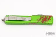 This Ultratech OTF automatic by Microtech features a T/E stonewashed tanto blade. Zombietech aluminum contoured frame with black hardware and tip down stainless steel clip. New condition. Includes original box and papers.