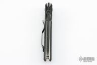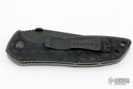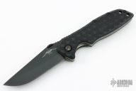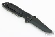 This Mach-1 by Emerson Knives features a black blade with thumb disc and notched thumbrest. The handle has dimple textured black G-10 scales over titanium liners, black tip up stainless steel clip. Dated 2000. Comes with original box and papers. New condtion.
