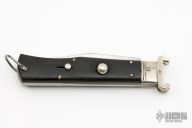 This Vintage Shot Shell Puller Auto by Virginia INOX of Maniago Italy, it features a mirror polished and flat ground blade. The handle has nickel silver bolsters, , black bakelite scales, D-stamped brass liners, steel spring. Has some scratches, otherwise good condition.