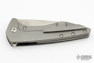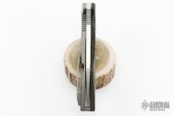 The Koenig Mini-Goblin 3 inch folding pocket knife is a collaboration between Edison Barajas of Sharknivco and Koenig Knives. The Mini-Goblin features a 3 inch stonewashed blade with notched thumbrest and flipper. The handle has a black canvas micarta and anodized and stonewashed titanium frame with a titanium backspacer and tip up clip with hidden screws. Comes with original box and COA dated 10/23/19. Excellent condition.