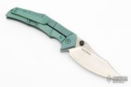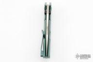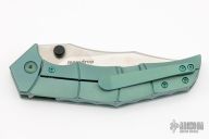 This Thresher by Massdrop is a Gavko design. It features a satin finished blade with dual thumbstuds. The handle has an anodized and tumbled titanium frame with matching backspacer and tip up clip. Comes with original box and zippered case. Has a few light scuffs, otherwise excellent condition.