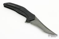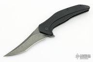 This Vendetta from Brous Blades features an acid wash finish recurve upswept blade with swedge, flipper and notched thumb rest. The handle is comprised of machined black G10 scales over stainless steel liners and black G10 backspacer. Satin finish stainless steel tip up pocket clip. Excellent condition.