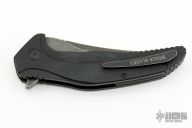 "Jason Brous began his efforts in knifemaking with the benefit of nearly 10 years of experience in CNC machining. His father owns a shop that specializes in the custom machining of high-precision components, mainly for the medical industry. Jason spent a lot of time in his father’s shop while growing up, and by his mid teens was actively helping out with production. His skills and knowledge steadily increased and by the time he was 20 he was a seasoned and very competent machinist. Jason's interest in knives actually began with art - specifically a style called “Bio-mechanical” - as practiced by one of his favorite artists, a Brazilian painter and tattooist named Lango. Biomechanical art (also called Biomech) is a surrealistic style of art that combines elements of machines and robotics with organic animal features. Intrigued by this style of art and its similarity to many fantasy knives, Jason figured that knifemaking would be a natural extension of his metalworking skills and an appropriate medium for his artistic ideas. Although he had no specific training in knifemaking, in 2010 he designed and made his first knife - a fantasy design with a Biomech flavor. Through persistent trial and error, Jason changed his style of knife design to focus on functional simplicity, while still maintaining a strong artistic signature. His early successes came in the form of a series of stout neck knives with dual finger-hole grips. Fans of these “Silent Soldier” neck knives began asking for other expressions of the design. Since then, Jason has created numerous variations including a clip point version, a tanto version and the very popular folder version called the Silent Soldier Flipper."