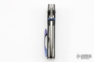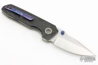 This Watchtower by JVO features a hand rub satin finished blade with a dual mokuti thumbstuds and a swedge. The handle has a marble carbon fiber scales, titanium pivot collars, satin finish titanium liners, and mokuti tip up clip. Nice detent, lockup and blade seating. Comes with zipper case. Excellent condition.