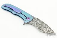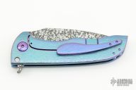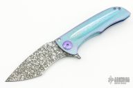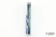This Splitter from John Gray Knives features a Nitro V Steel drop point blade with Dark Rain finish, has a flipper. The handle has a Bark finished and extra pop anodized titanium frame with matching tip up clip. Includes Maker's Card dated 12-10-2021. Nice detent, lockup and blade seating. Excellent condition. Comes with a zippered case.