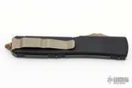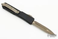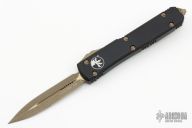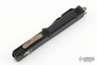 This Ultratech OTF automatic by Microtech knives features a D/E bronzed Apocalyptic blade with a standard edges, and a black aluminum handle with bronzed Apocalyptic finished hardware and tip down clip. Glass breaker. S/N 197112. Dated 04/2021. Excellent Condition.